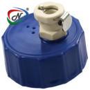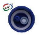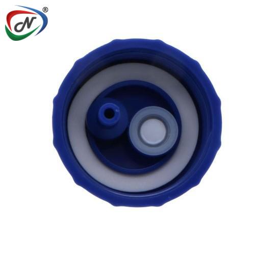 DESCRIPTION | GL45 HDPE CAP WITH POLYETHYLENE FOAM SEALING GASKET, HYDROPHOBIC VENT AND INTEGRAL VALVED PMC12 BODY QUICK DISCONNECT INTERFACE |