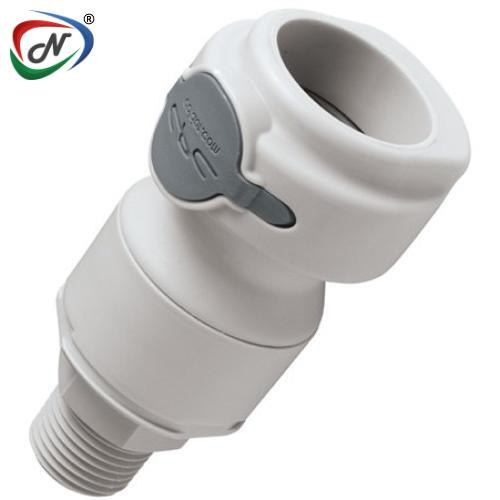 NSHD10008V 1/2 MNPT Valved In-Line Molded Grey Polypropylene Coupling Body FKM Seal