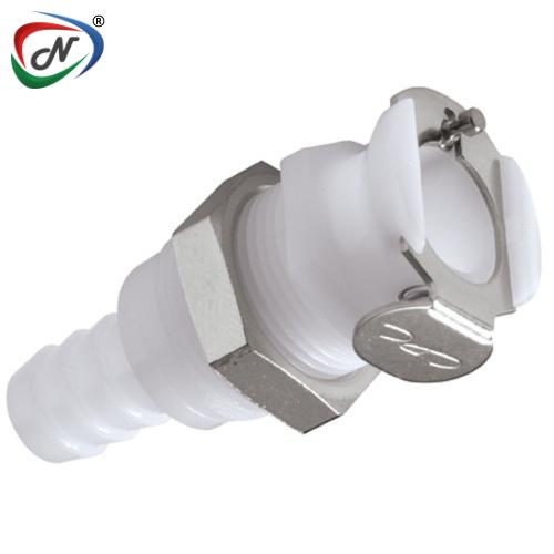 PLCD16006 3/8 Hose Barb Valved Panel Mount Acetal Coupling Body