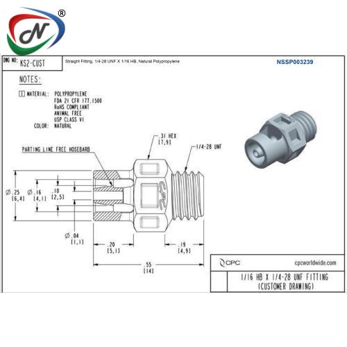 WARNING: It is the customer's responsibility to test the suitability of CPC products in their own application conditions.