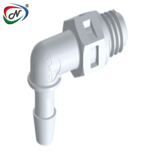 ME330 Elbow Fitting, tapered 10-32 X 3/32 HB, White Nylon