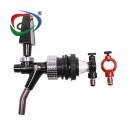 THIS YOKE VERSION OF THE CMB PRE-MIX VALVE ALLOWS FOR A 90 DEGREE OUTLET USING EITHER 1/4" OR 1/2" MFL NIPPLES WITH BUILT IN WASHER (EXCLUSIVE TO CMB!)