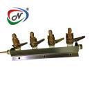 KK3304 4-WAY ALUMINUM MANIFOLD 1/4 NPT X 1/4 BARB (CO2 DISTRIBUTOR WITH HAND SHUT OFF VALVE 4 WAY )