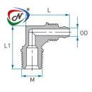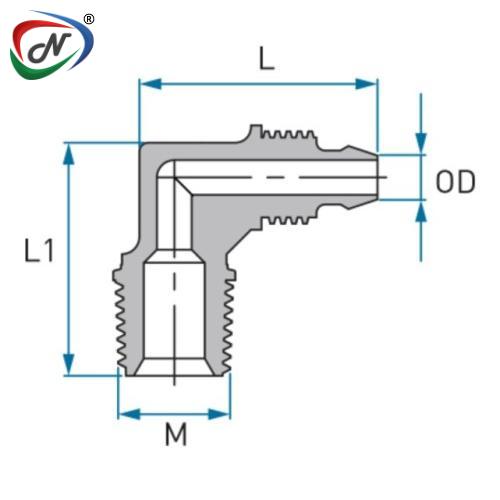 male BSPT threaded pipe connection, changing the flow direction by 90 degrees.